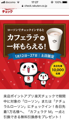 こんばんわ 本日はローソンでカフェラテを 一杯無料でもらう方法 そして楽天ポイントを何も買わずにもらう方法 教えちゃいます!!! レディゴー